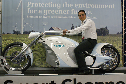 There are motorcycles and then there are choppers, and here, for the ethical Hell’s Angel (not illustrated), is the electric chopper. Siemens, an electrical engineering giant, isn’t generally in the business of manufacturing motorbikes. However, for the American Chopper show, the firm made an exception, and, with the help of Orange County Choppers, it looks like they’ve made a good job of it. This 650-pound beast can hit 60 mph in six seconds, and has a top speed of 100 mph. What’s more, the entire aluminum shell is recycled. Beat that for environmental responsibility.2. Brammo Enertia powercycle