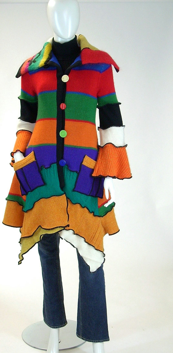 The self-described “clothing artist” takes old duds made of natural fibers and recycles them into colorful new designs.