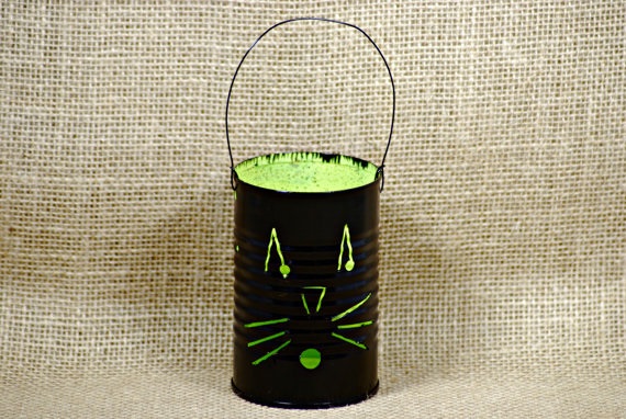 With Halloween on the way, this would be perfect for decorating the home or as a lantern for a Halloween party. The black and citron colors make this a gorgeous, stark piece. It comes with a glass votive cup and tea light candle, and it was made by SecondBliss at etsy.