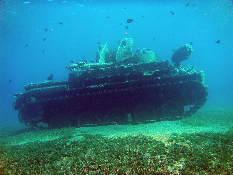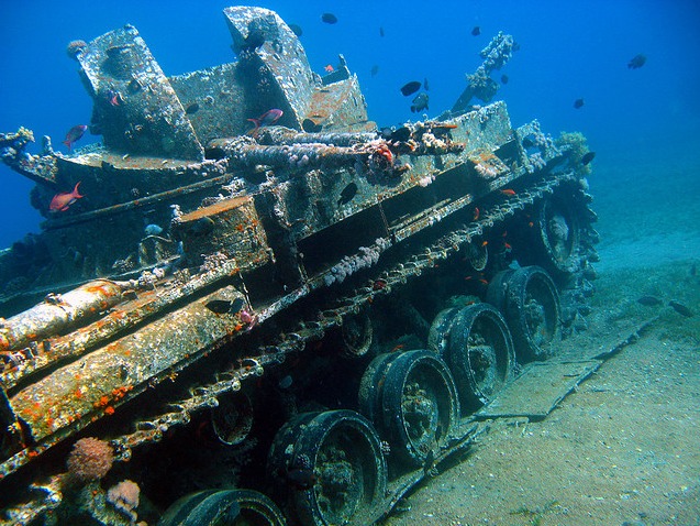 Imagine coming across this imposing shape on the seabed. Once it was an M42 Duster, a powerful anti-aircraft gun in the Jordanian Army; now, rather than being a weapon of war, it sits at the bottom of the sea in the Gulf of Aqaba, off the coast of Jordan, and has become a haven for coral and fish — and curious divers!